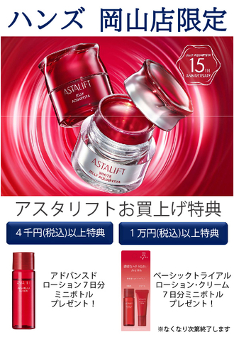 ハンズ岡山店では11月16日(日)、29日(土)に今話題のスキンケアシリーズ『アスタリフト』をご紹介。専門スタッフが肌のお悩みをお伺いし、お客様に…...