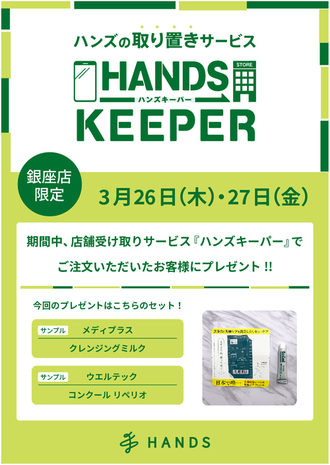 【銀座店限定】ハンズキーパーご利用キャンペーン(3/26~3/27)