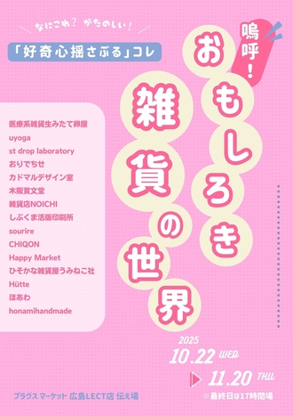 LECT2階プラグスマーケット広島LECT店伝え場にて『好奇心揺さぶるコレ嗚呼!おもしろき雑貨の世界』本日より開催いたします。開催期間:10月22…...