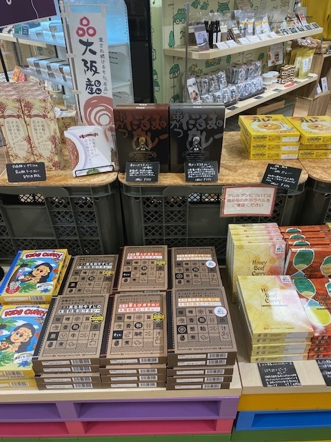 【ご当地のカレー(レトルト)】「犬鳴豚とタケノコの花山椒キーマカレー」「大阪市産ほうれん草のチキンカレー」「(私市産はちみつを使った)はちみつビーフカレー」「難波葱ホルモンの大阪和風出汁カレー」