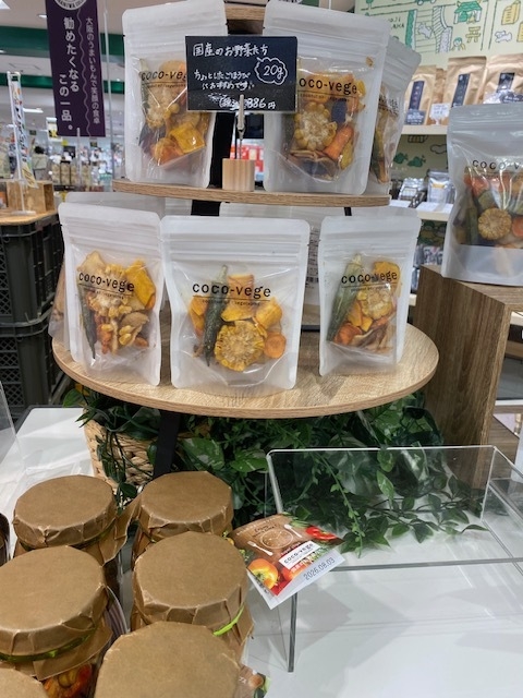 【お菓子・スナック】「ココベジ(野菜チップス)」「石切名産かた焼き(せんべい)」「たこべえ三兄弟(菓子)」「河内長野産ミカンドロップ・南河内産いちごドロップス」
