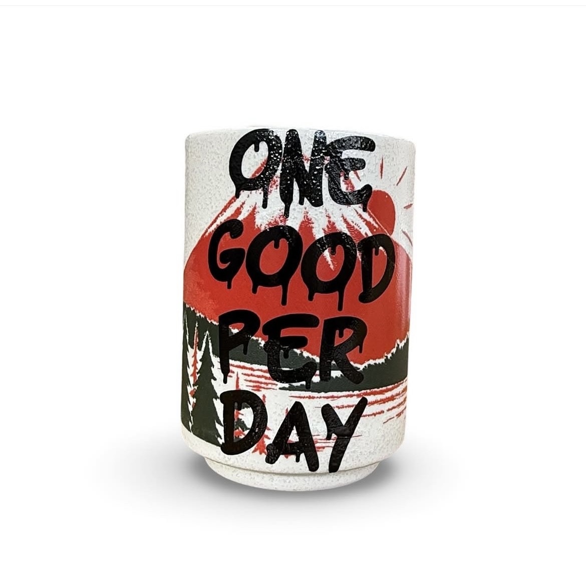 ●1日1善湯呑み:2,090円(直径7.2cm×10.3cm)電子レンジ・食洗器可。セラミック製